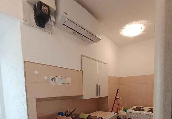 Dieses kleine und einfach ausgestattete Apartment mit 1 kleinen Schlafzimmer bietet Platz für 2 Personen und verfügt über eine kleine Küchenzeile mit Grundausstattung an Kochutensilien, ein kleines Wohnzimmer mit Sofa und Kleiderschrank und ein Badezimmer. Von einem kleinen Balkon haben Sie direkten Blick auf Meer und können die wunderschönen Sonnenuntergänge über dem Meer genießen.